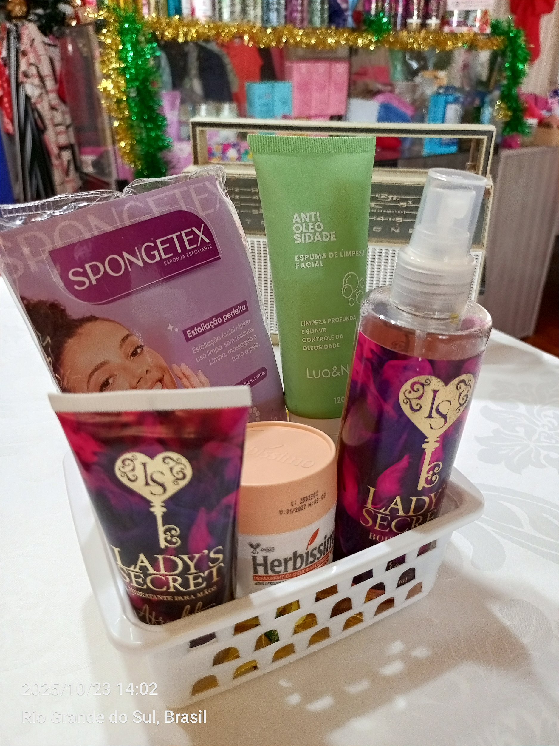 KIT BELEZA CONTÉM 1 BODY SPLASH 200L, 1 LEIDI SECRET 200ML, 1 HIDRATANTE DE MÃO 60ML, 1 PACOTE COM DUAS ESPONJAS ESFOLIANTE, 1 ESPUMA DE LIMPEZA FACIAL 120G E 1 HERBISSIMO DESODORANTE CREME 55G.